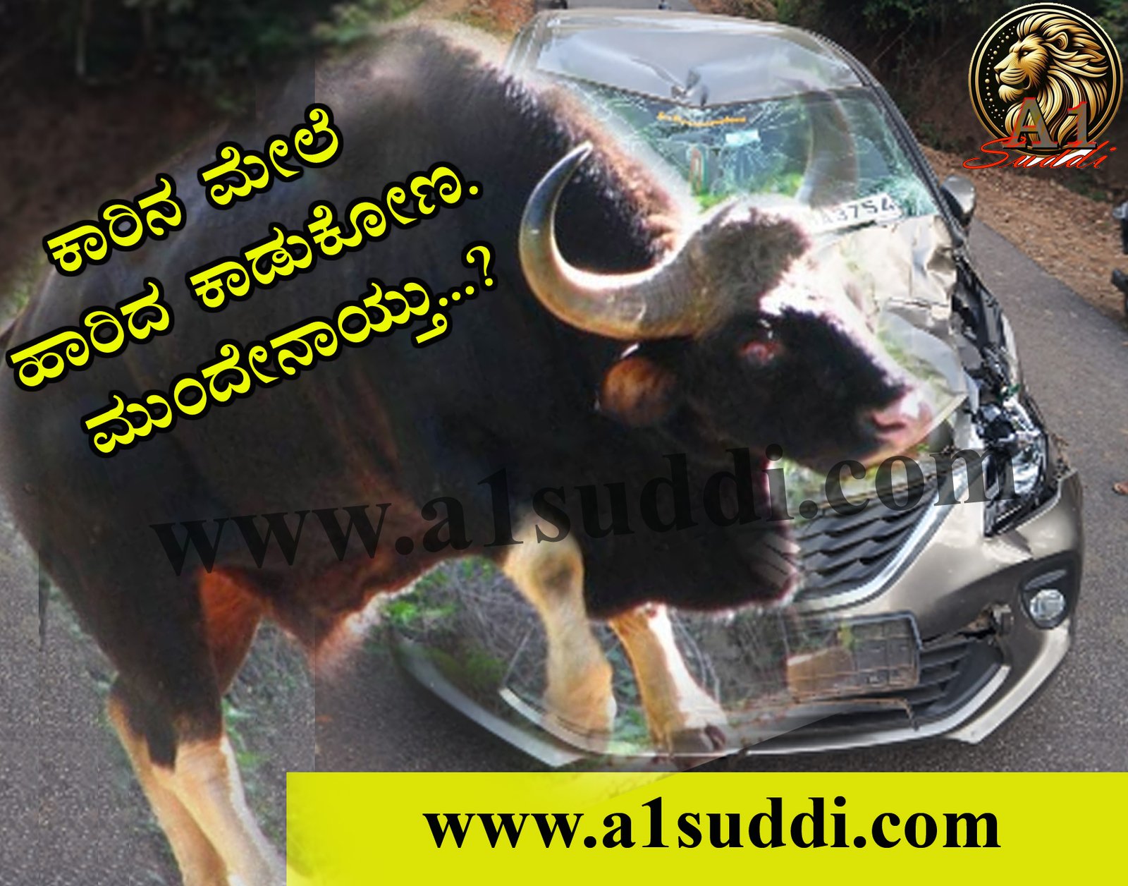 ರಸ್ತೆಯಲ್ಲಿ ಕಾಡುಕೋಣದ ಹಿಂಡು ಸಂಚರಿಸುವಾಗ ಕಾರೊಂದು ಅಡ್ಡ ಬಂದ ಪರಿಣಾಮ ಕಾರಿನ ಮೇಲೆ ಕಾಡುಕೋಣ ಹಾರಿ ಕಾರಿನ ಮುಂಭಾಗ ಸಂಪೂರ್ಣ ಜಖಂಗೊಂಡಿದೆ.