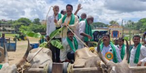 shivamoga : ರೈತ ದಸರಾದ ಎತ್ತಿನ ಗಾಡಿ ಜಾಥಾಕ್ಕೆ ನಗರದ ಸೈನ್ಸ್ ಮೈದಾನದಲ್ಲಿ ಪ್ರಗತಿಪರ ರೈತರಾದ ಕಮಲಮ್ಮ, ಟೀಕಪ್ಪ ಚಾಲನೆ ನೀಡಿದರು. ನಗರದ ಸುತ್ತಮುತ್ತ ಹಳ್ಳಿಗಳಿಂದ ಬಂದ ರೈತರು ಅಲಂಕೃತ ಎತ್ತಿನ ಗಾಡಿ, ಟ್ರಾಕ್ಟರ್ ಮತ್ತು ಟಿಲ್ಲರ್ಗಳ ಸೈನ್ಸ್ ಮೈದಾನದಿಂದ ವಿಜ್ರಂಭಣೆ ಮೆರವಣಿಗೆ ಹೊರಟು ಕುವೆಂಪು ರಂಗಮಂದಿರದರೆಗೆ ವಿಜ್ರಂಭಣೆಯಿಂದ ನಡೆಯಿತು. ಸಂದರ್ಭದಲ್ಲಿ ಮಹಾನಗರ ಪಾಲಿಕೆಯ ಅಧಿಕಾರಿ ನಾಗೇಂದ್ರ, ನೌಕರರಾದ ಗೋವಿಂದಪ್ಪ, ರೈತ ಸಮಿತಿ ಸದಸ್ಯ ಕಾರ್ಯದರ್ಶಿ ವಿಕಾಸ್, ಪಿ. ಕುಮಾರ್, ಹೆಚ್.ಡಿ. ಮಂಜಣ್ಣ, ಮಂಜುನಾಥ್, ಕಾರ್ತಿಕ್, ಸುಧಾಕರ್, ಹಾಗೂ ಕೆಳದಿ ಶಿವಪ್ಪನಾಯಕ ಕೃಷಿ ವಿವಿ ಕುಲಪತಿ ಡಾ.ಆರ್.ಸಿ. ಜಗದೀಶ್, ವೈ.ಹೆಚ್. ನಾಗರಾಜ್ ರೈತ ಮುಖಂಡರು, ರೈತ ಮಹಿಳೆಯರು, ಮಹಾನಗರ ಪಾಲಿಕೆ ಸಿಬ್ಬಂದಿಗಳು ಉಪಸ್ಥಿತರಿದ್ದರು.