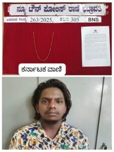 ನ್.ಟಿ.ಬಿ ಕಚೇರಿ ಸಮೀಪ ವಾಸವಾಗಿರುವ ನಗರಸಭೆ ನೌಕರರಾದ ಶ್ರೀಮತಿ ಸೌಭಾಗ್ಯ (48) ನೀಡಿದ ದೂರಿನ ಮೇರೆಗೆ ಈ ಪ್ರಕರಣ ದಾಖಲಾಗಿತ್ತು. ನಾ.19-2025 ರಂದು ಬೆಳಿಗ್ಗೆ 5:30 ರಿಂದ 10:00 ಗಂಟೆ ನಡುವಿನ ಅವಧಿಯಲ್ಲಿ ಅವರ ಮನೆಯ ಡ್ರೆಸ್ಸಿಂಗ್ ಟೇಬಲ್ ಮೇಲೆ ಇಟ್ಟಿದ್ದ ಸುಮಾರು 10 ಗ್ರಾಂ ತೂಕದ, ಸುಮಾರು ₹1,00,000 ಮೌಲ್ಯದ ಬಂಗಾರದ ಸರವನ್ನು ಯಾರೋ ಕಳ್ಳತನ ಮಾಡಿಕೊಂಡು ಹೋಗಿದ್ದರು. ಈ ಸಂಬಂಧ ಭದ್ರಾವತಿ ನ್ಯೂಟೌನ್ ಪೊಲೀಸ್ ಠಾಣೆಯಲ್ಲಿ ಅಪರಾಧ ಸಂಖ್ಯೆ 263/2025 ಅಡಿಯಲ್ಲಿ ಬಿ.ಎನ್.ಎಸ್ ಕಾಯ್ದೆ ಕಲಂ 305 ಪ್ರಕಾರ ಪ್ರಕರಣ ದಾಖಲಾಗಿತ್ತು.