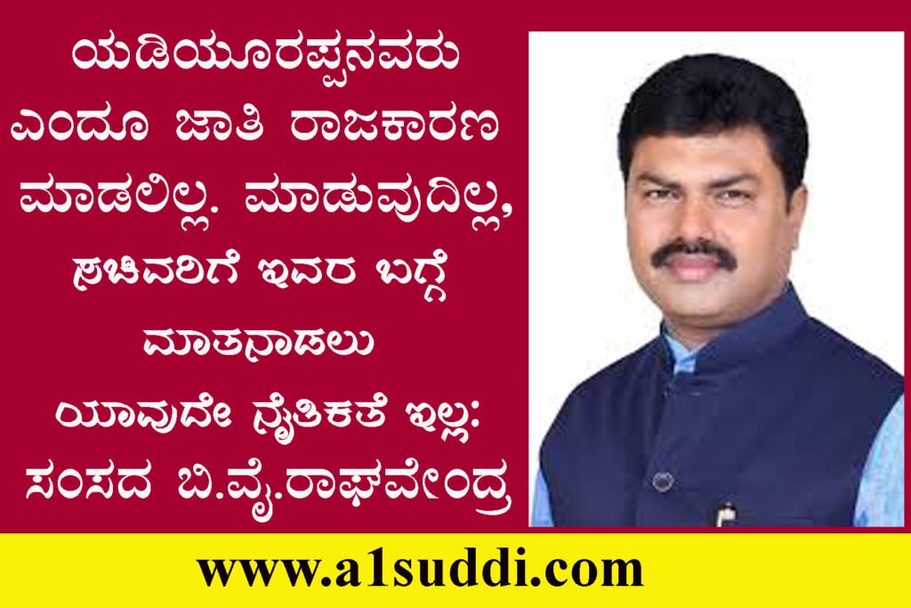ಶಿವಮೊಗ್ಗ : ಬಿ.ಎಸ್.ಯಡಿಯೂರಪ್ಪ ಜಾತಿ ರಾಜಕಾರಣ ಎನ್ನುವುದು ಮತ್ತು ವಿಜಯೇಂದ್ರ ಬಚ್ಚಾ ಎಂದು ತೆಗಳುವುದಕ್ಕೆ ಸಚಿವರಿಗೆ ಯಾವುದೇ ಯೋಗ್ಯತೆಯಿಲ್ಲ ಎಂದು ಸಂಸದರಾದ ಬಿ.ವೈ.ರಾಘವೇಂದ್ರ ತಿಳಿಸಿದರು.